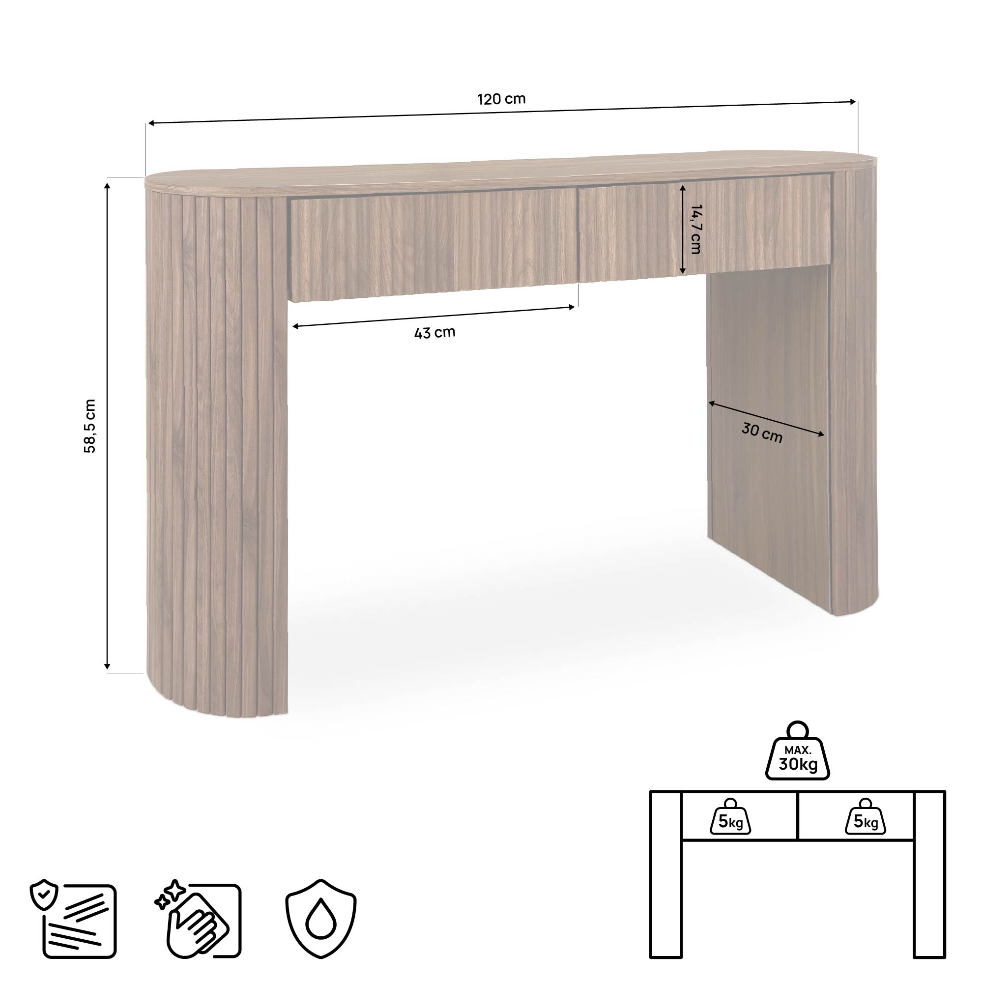 - Walnut-effect melamine finish, scratch-resistant