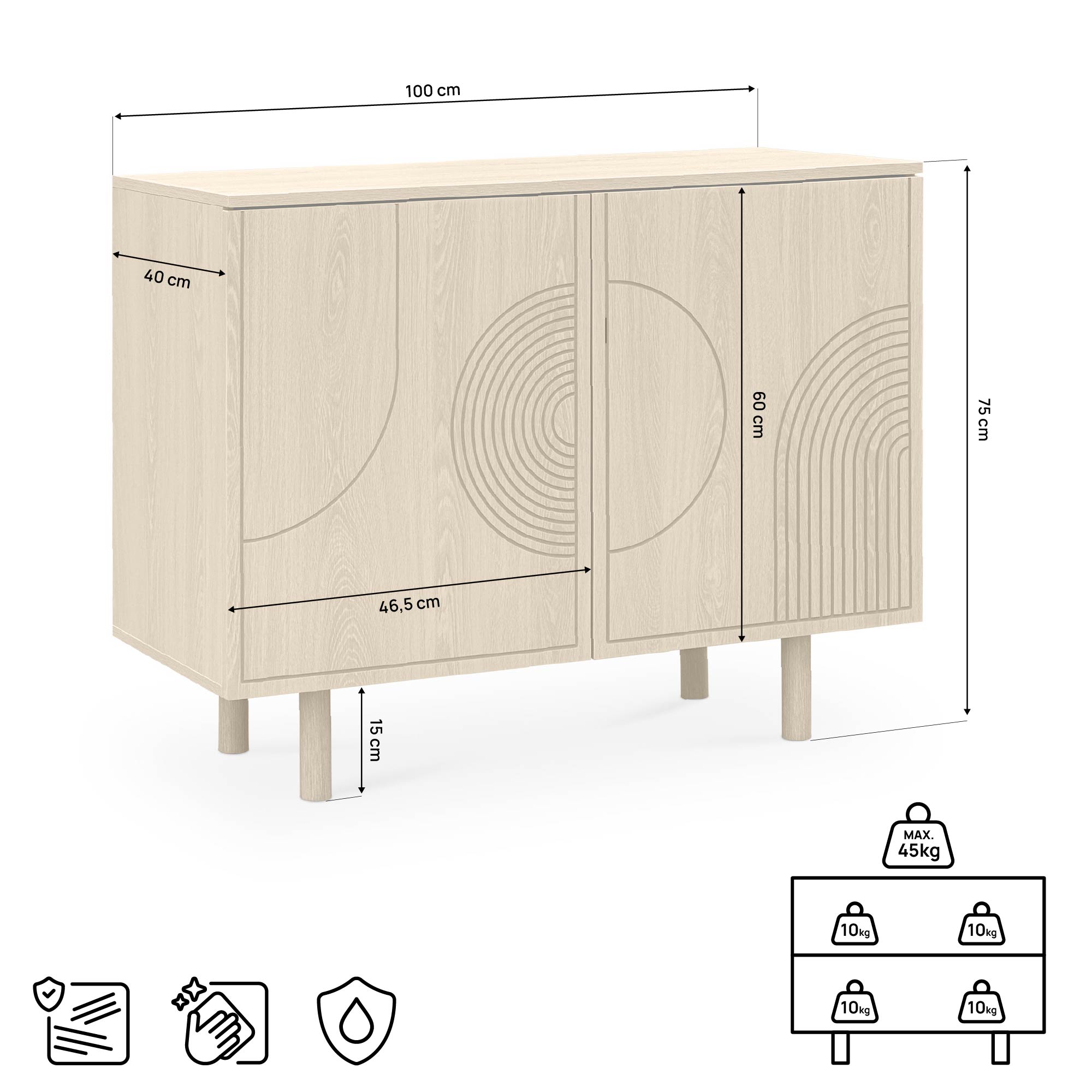 Scandinavian sideboard 100cm 2 doors oak finish SASKIA